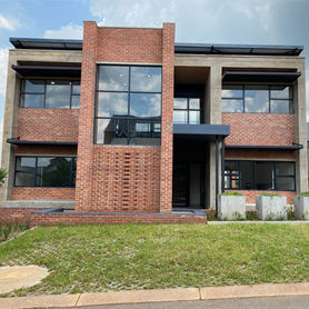 This modern commercial office building was completed as a comprehensive turnkey project, delivered from groundworks through to final furnishing. The architectural design combines face brick, exposed concrete elements, and steel detailing to create a bold industrial aesthetic with clean contemporary lines.